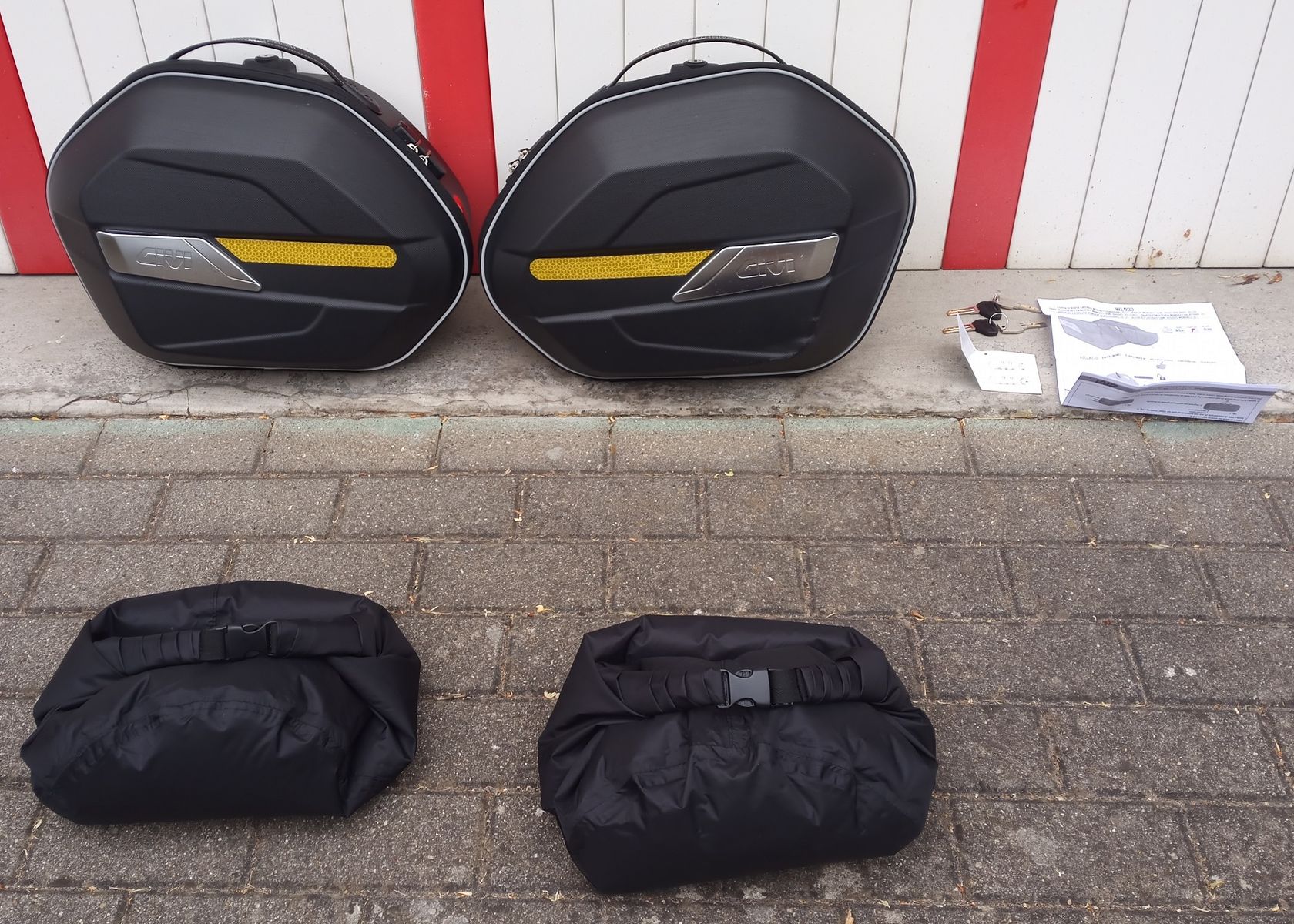 | Komplett mit je 2 Schlüsseln und wasserdichten Innentaschen sowie Anleitungen. Passen auf alle GiVi-Monokey-Träger! Die Taschen wurden erst im Feburar'23 gekauft und seitdem nur für zwei Wochenendtouren verwendet. Sie sind mir persönlich doch zu klein für die große Urlaubstour (werde auf Koffer umrüsten), deswegen biete ich sie hier zum Verkauf an. Eine ist mir leider runtergefallen und hat deswegen optische Mängel (siehe Bild), die jedoch auf die Funktion keinen Einfluß haben. Alle Reißverschlüsse und Schlösser funktionieren einwandfrei! Preis 220€, Versand möglich (10€, dhl, versichert). Mehr Bilder / bei Interesse bitte PN. |