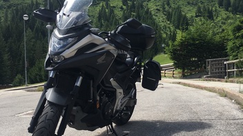 Stell dich auf eine Stehleiter und fotografiere dein Motorrad von oben. Einmal mit Gepäcksystem, das andere mal ohne.