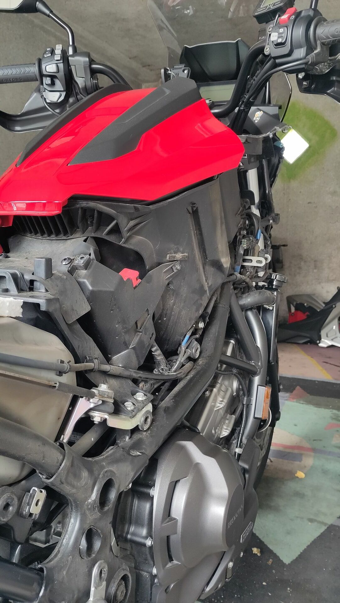 An meiner RH09 von BJ 2021 ging mir der schwammige Druckpunkt der Vorderradbremse auf die Nerven, der Bremshebel ließ sich bis zum Anschlag an den Lenker ziehen. Im Fahrbetrieb hätte dann längst das ABS gearbeitet aber gefallen hat mir dies trotzdem nicht. Das wollte ich ändern denn im Vergleich waren die Bremsschläuche meiner RC72 selbst nach sieben Jahren in einem besseren Zustand.