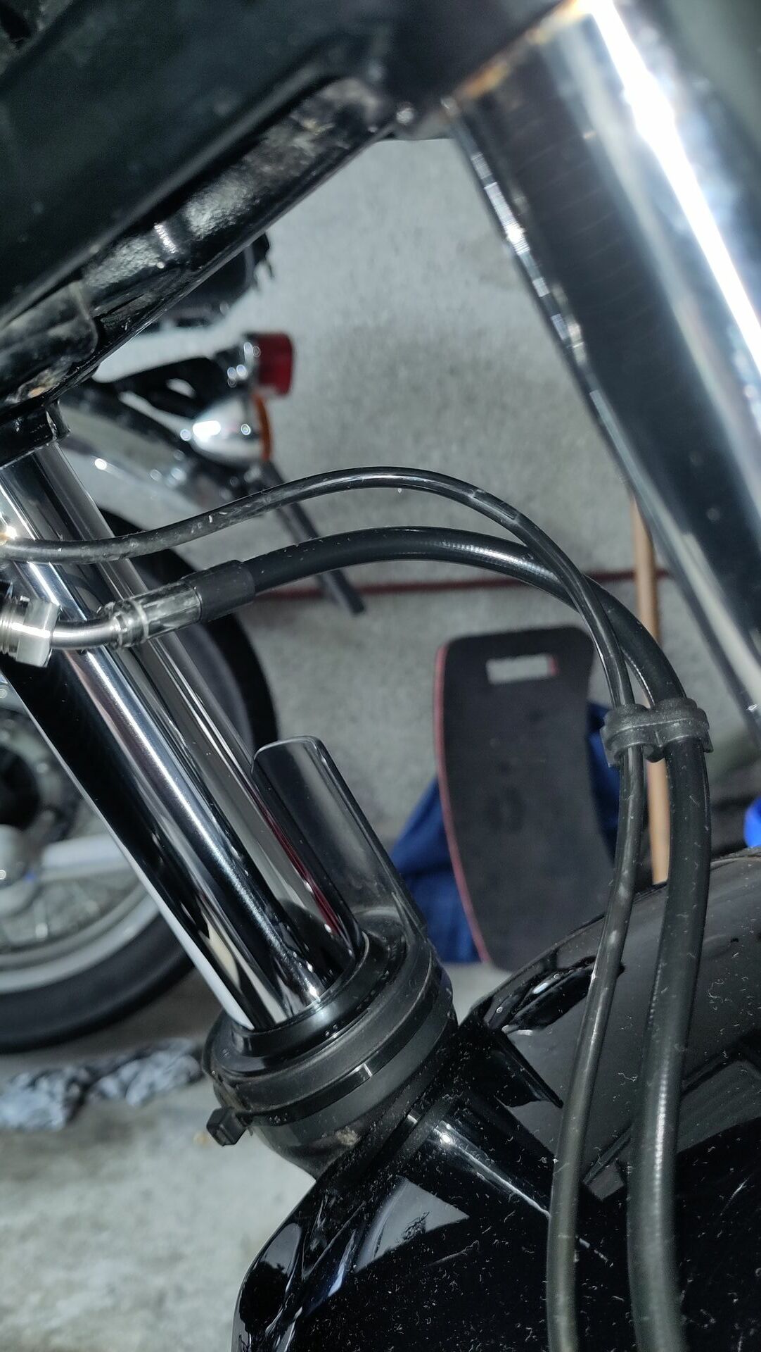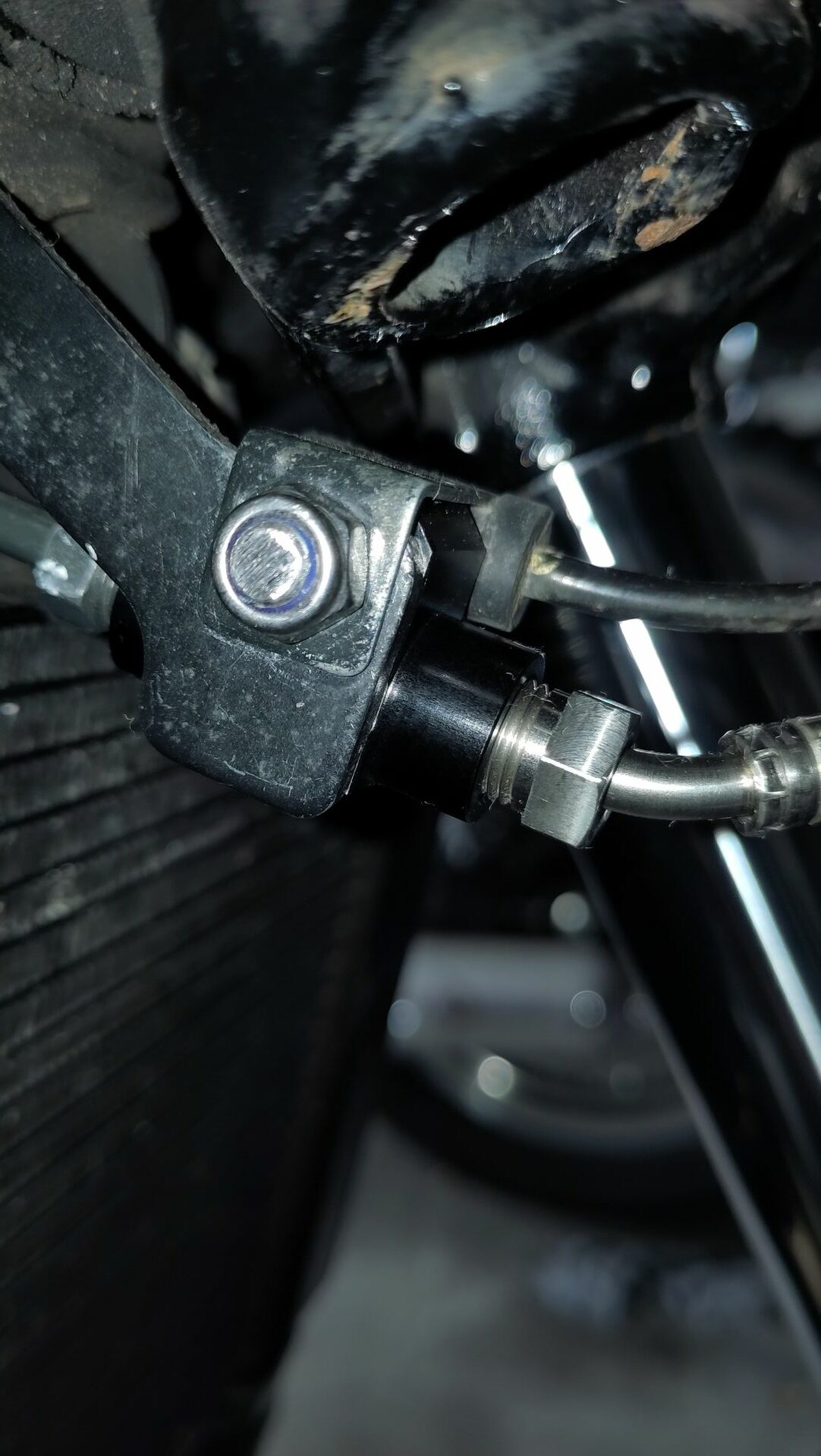 Und die Gummischläuche galt es gegen Stahlflex-Leitungen auszutauschen. Das werde ich jetzt nicht detailliert beschreiben, es werden nur die wesentlichen Arbeitsschritte aufgeführt.