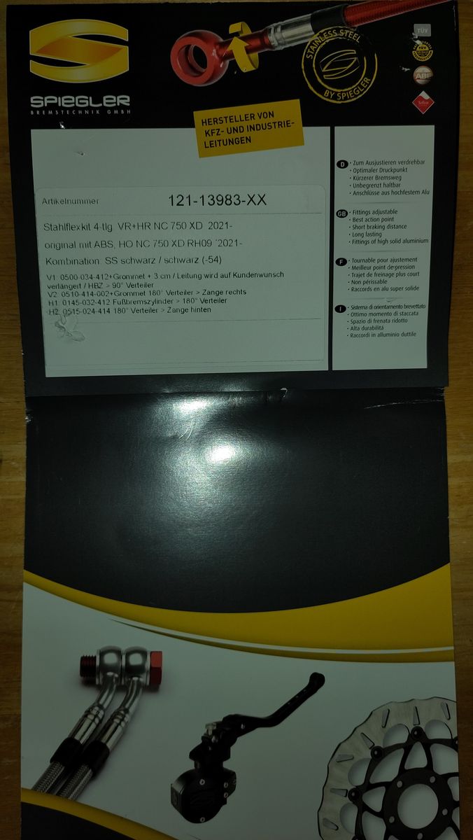 Doch für die RH09 gab es bis dato noch keinen Satz, egal von welchem Hersteller. Also habe ich mit der Fa. Spiegler in Breisach Kontakt aufgenommen. Die würden mir nach dem Muster meiner Bremsschläuche einen Satz in Stahlflex anfertigen, die Leitung zum Handbremszylinder um 3 cm länger als original wegen der Lenkererhöhung mit Versatz.