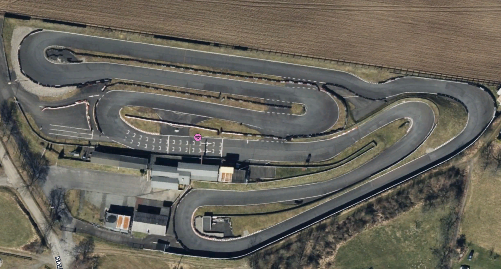 Hier ist ein Satellitenbild, dann kann man den Streckenverlauf (Achtung: ist ein Linkskurs) erahnen: