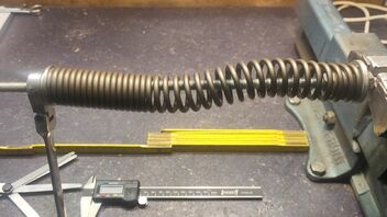 Doch wie sich die Gabelfeder der NC beim Einfedern tatsächlich verhält ist mir, ehrlich gesagt, aus den Teils konträren Aussagen nicht wirklich klar geworden. Deshalb habe ich gestern einen Versuch gemacht. Ich nahm eine Originalfeder und habe diese erst einmal vermessen.