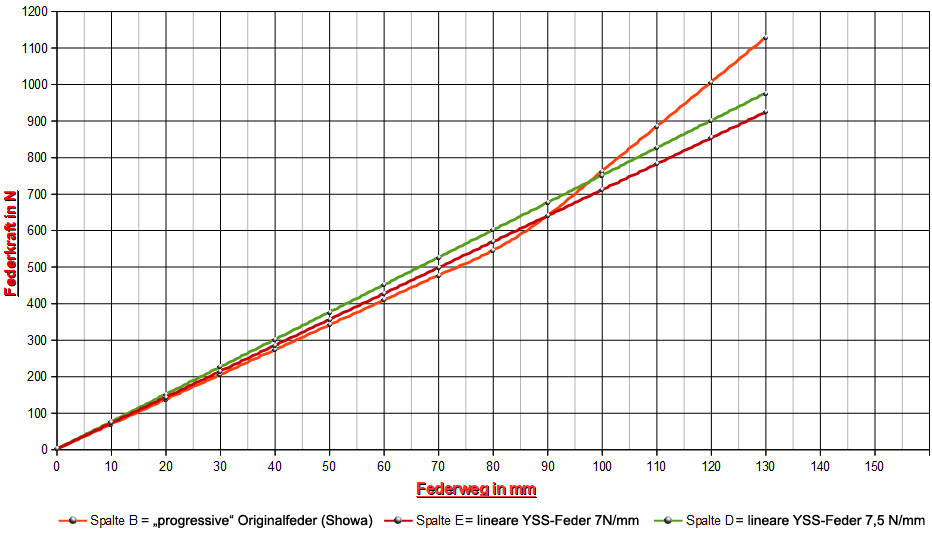 Das bedeutet das die von Wilbers als zu hart bezeichnete zweite Federrate noch härter ist!!