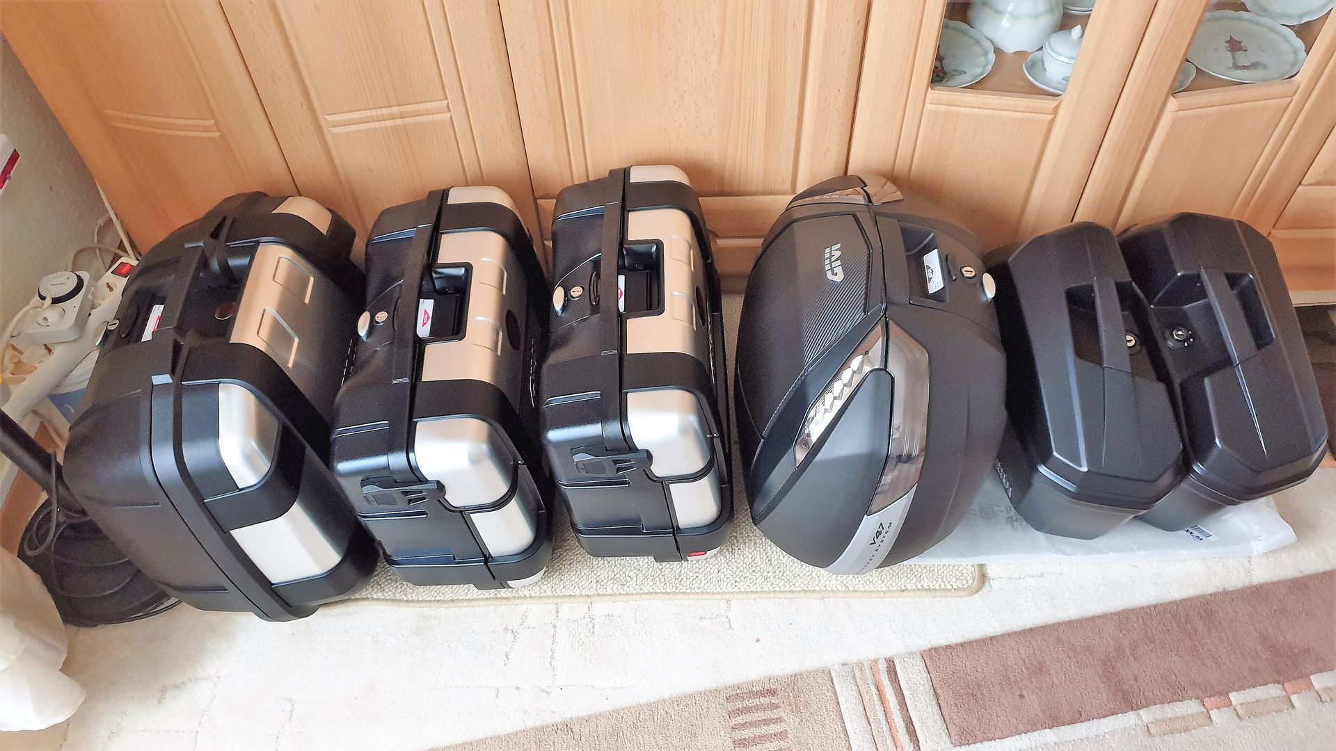 Geplant sind der Shad Topcasehalter, und ein Givi Topcase (E42), denn nirgends bekommt man so viel Hässlichkeit so günstig.