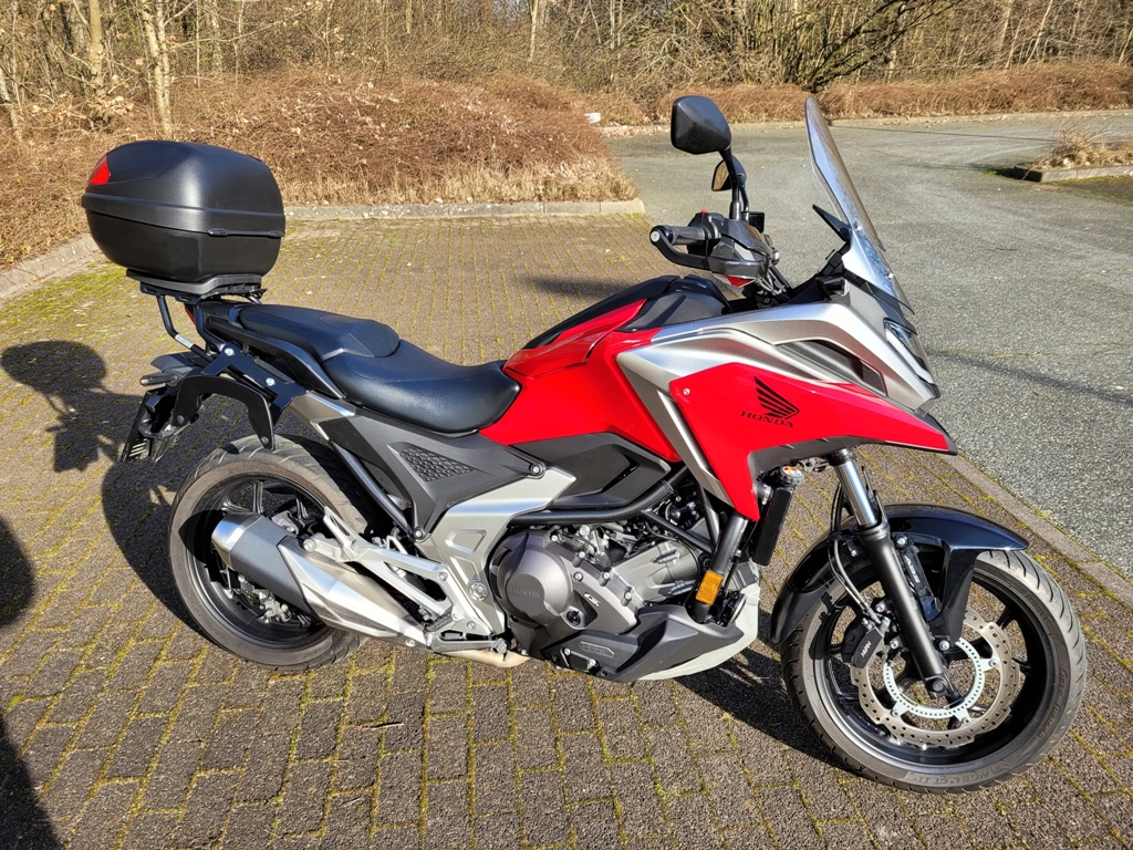 Honda NC750XD DCT, Model RH09, aus Erstbesitz. Ein schickes und schlankes Motorrad, genutzt von zarter Damenhand in ruhigem Alter. Alle Wartungen und Servicemaßnahmen sind durchgeführt, die Historie ist lückenlos belegbar.
