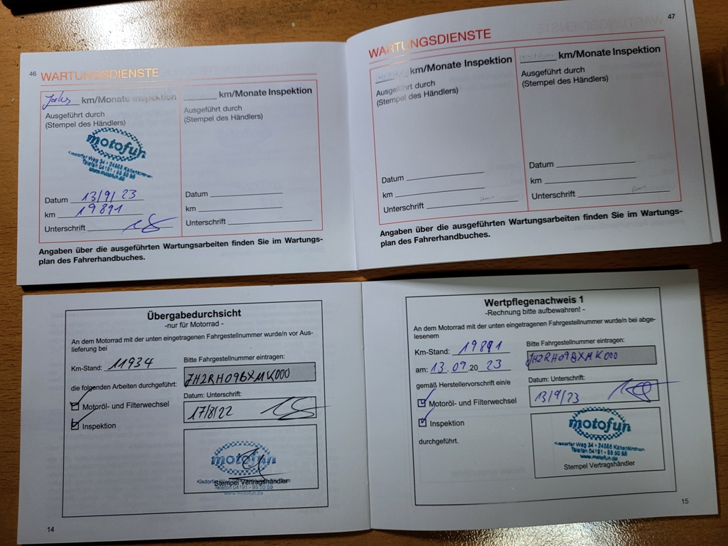 TÜV bis 05/2025, letzte Inspektion 09/2023 bei km-Stand 19.900. KM-Stand jetzt: 21.000 km