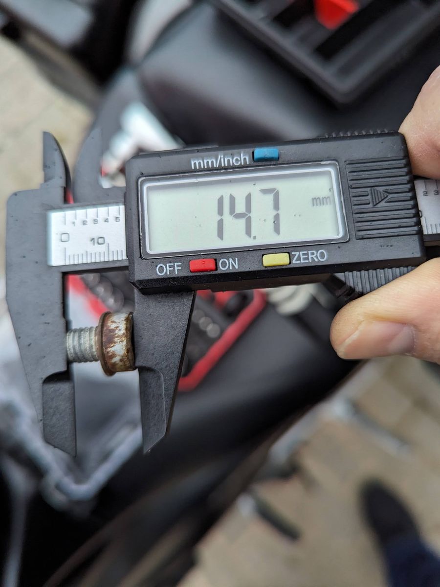 Hallo, bei meiner gebraucht gekauften NC700XD korrodiert die im Bild gezeigte Schraube sehr stark, daher will ich diese austauschen. Obwohl die Schraube eingezeichnet ist, gibt es keine Bezeichnung. Das ist der Fall bei allen Seiten, auf welchen ich nachgeschaut habe. Daher habe ich die Schraube aufgeschraubt und nachgemessen. Unter der Schraube befindet sich eine Kupfer Unterlegscheibe Innendurchmesser 8,4mm und Außendurchmesser 14mm. Die Innensechskantschraube hat einen Durchmesser mit Gewinde von 7,8mm und einer Länge von 9,3mm. Ich denke es ist verzinkter Stahl, sieht jedoch nicht wie die anderen verzinkten Schrauben aus, eventuell ist es nicht original.