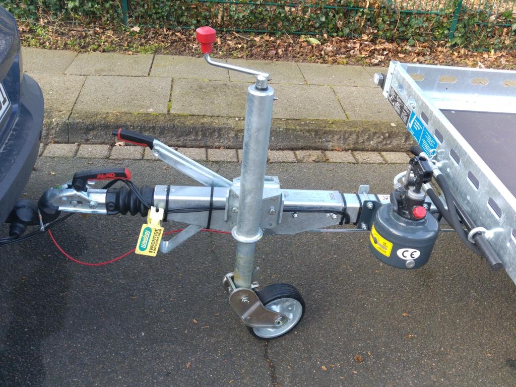 "100 km/h"-Zulassung, gebremst, "AL-KO"-Zugkugelkupplung, automatisches Schwerlaststützrad, 13-polige Elektrik, alle Metallteile feuerverzinkt, Siebdruckplatte als Ladefläche