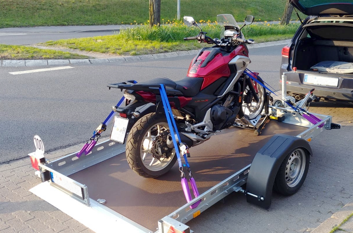 innen: L 2600 mm x B 1550 mm x (Lade-)H 460 mm, Bordwandhöhe 150 mmDas Innenmaß ermöglicht den Transport zweier „ausgewachsener“ Motorräder oder z.B. 1 Motorrad und 2 eBikes. Auch Beiwagen-Motorräder sind möglich.