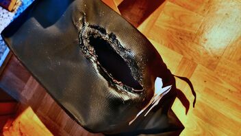Der Schalldämpfer hat die Tasche nicht berührt, es waren einzig und allein die, trotz Geschwindigkeit, hochgestiegenen heissen Gase.