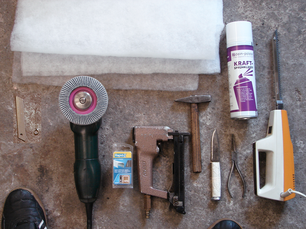 "Lehne" und Sitzfläche ein recht scharfer Radius. Hier muß man von Hand den leicht elastischen Bezugsstoff als erstes links und