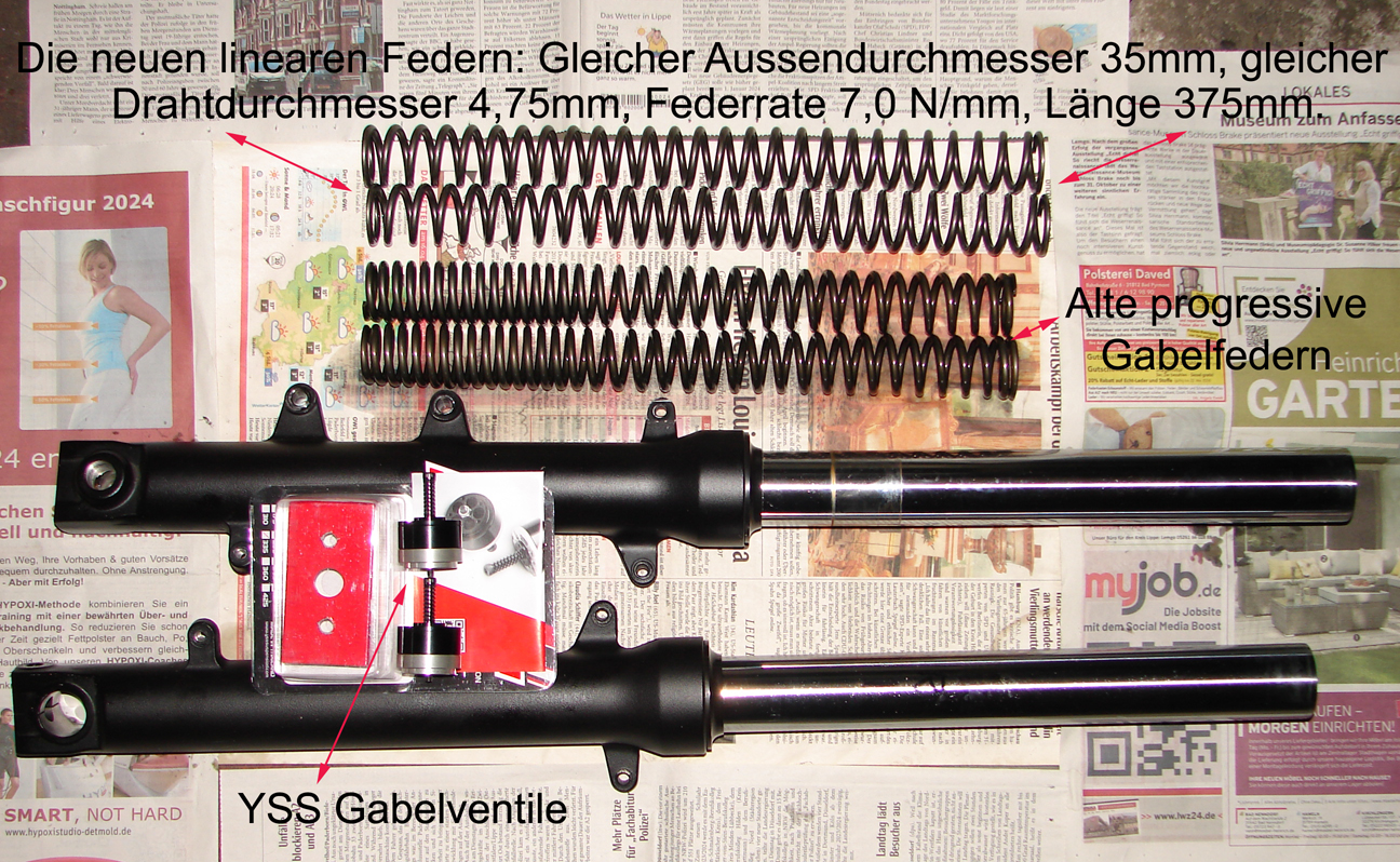 Ich habe jetzt die im Artikel angesprochene Feder sowie ein YSS Gabelventil welche unten zu sehen sind eingebaut.