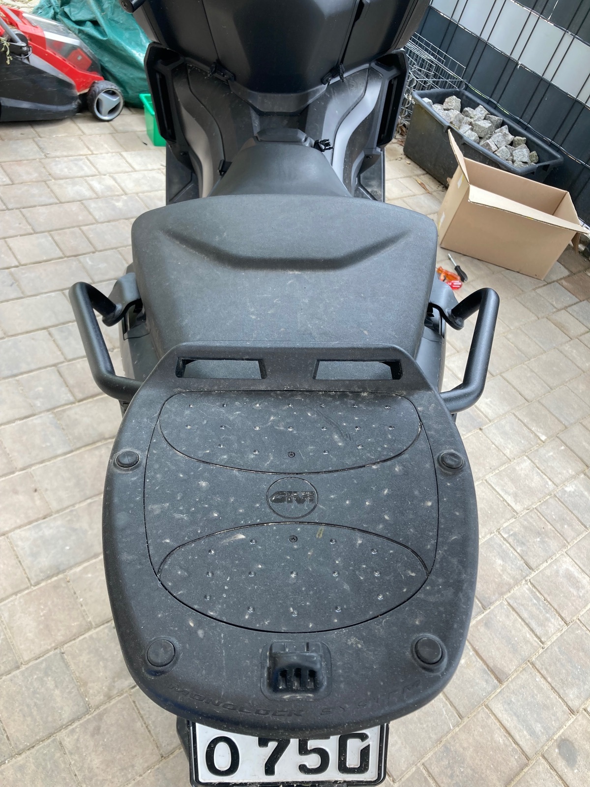 Aber manchmal hätte ich gerne statt dem „mittelschönen“ Plastikkoffer eine kleine Hecktasche hinten drauf.