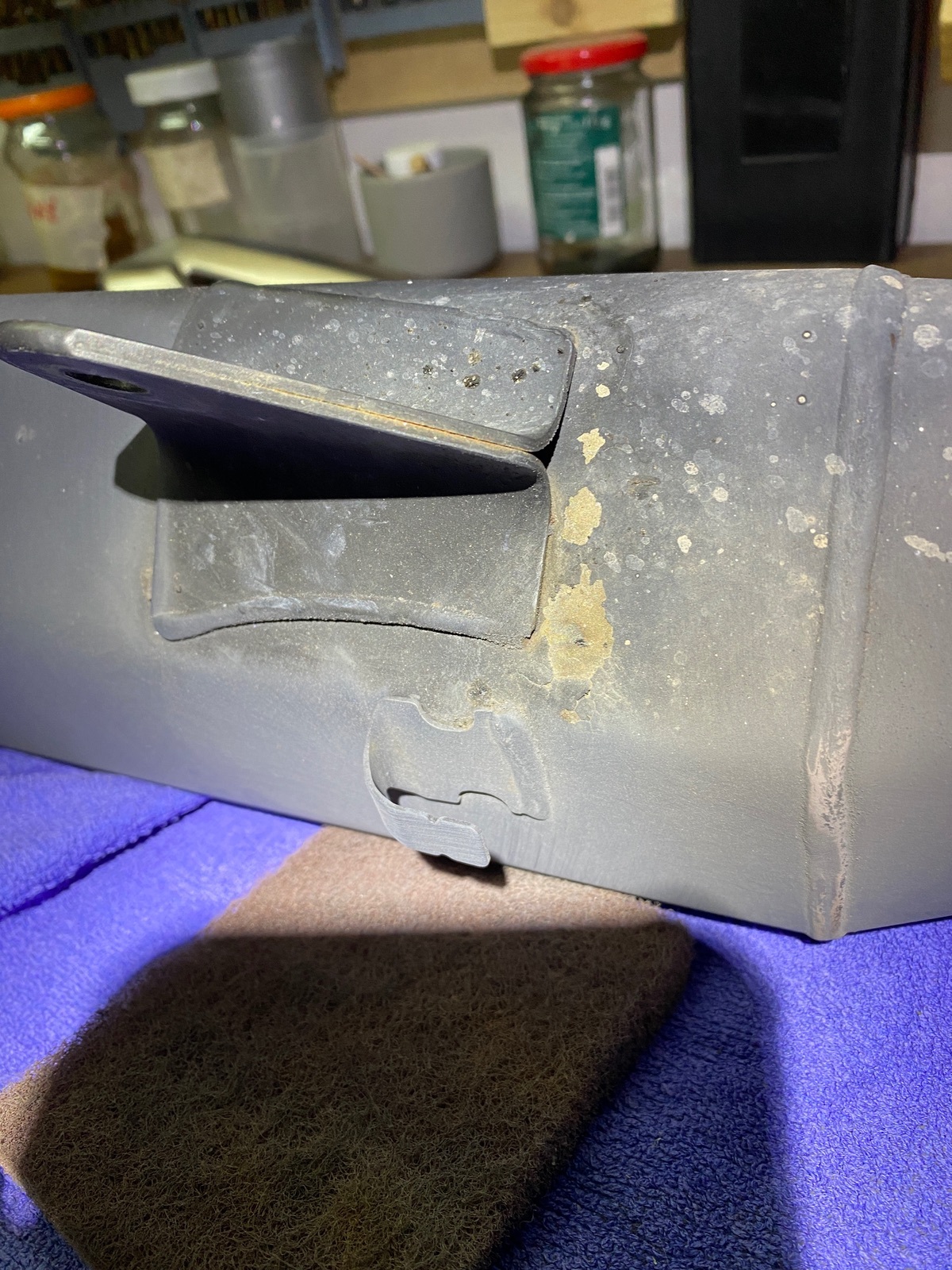 Und was habe ich gefunden? Nix, nada. Zwar etwas verdreckt/ verstaubt, aber keinen Rostkrümel. Ich finde auch, dass die Lackierung ganz solide aufgetragen wurde. Sauber lackierte Kanten, gut überdeckte Schweißnähte. Kein abgeblätterter Lack.