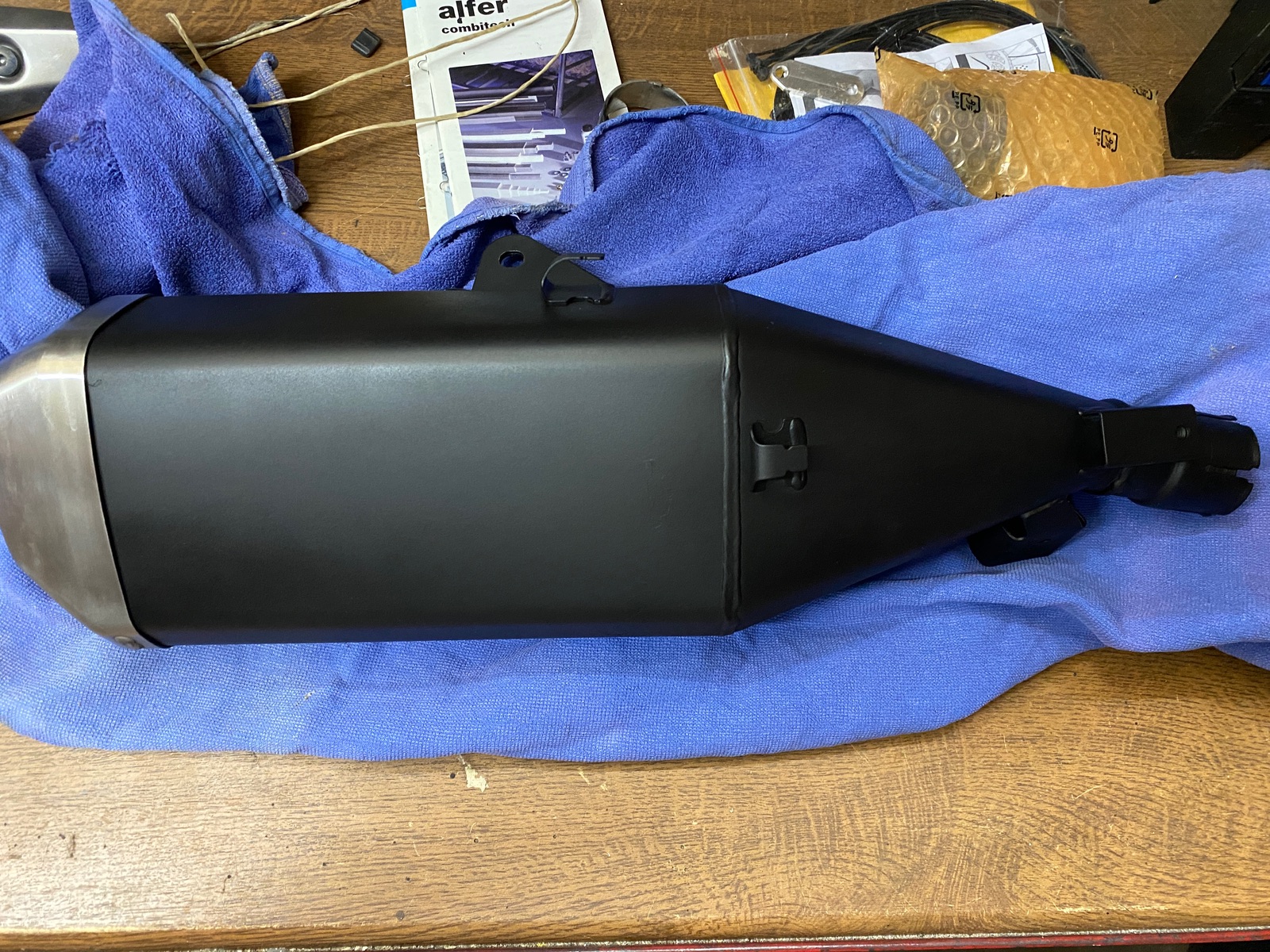 Übrigens sieht auch der schwarz lackierte Auspuff noch gut aus. Bin auch zeitweise im Winter gefahren und ab und an im Regen.