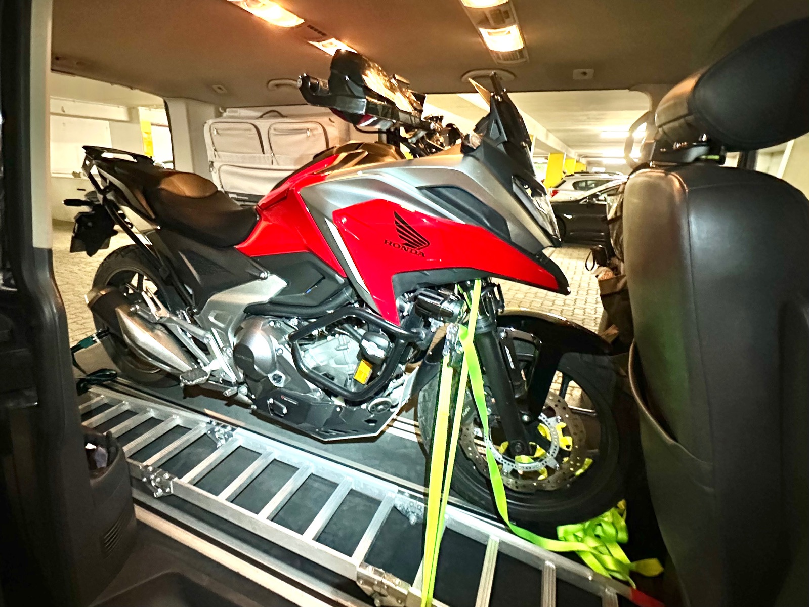 Die NC750x passt in einen VW Bus T5 Muiltivan