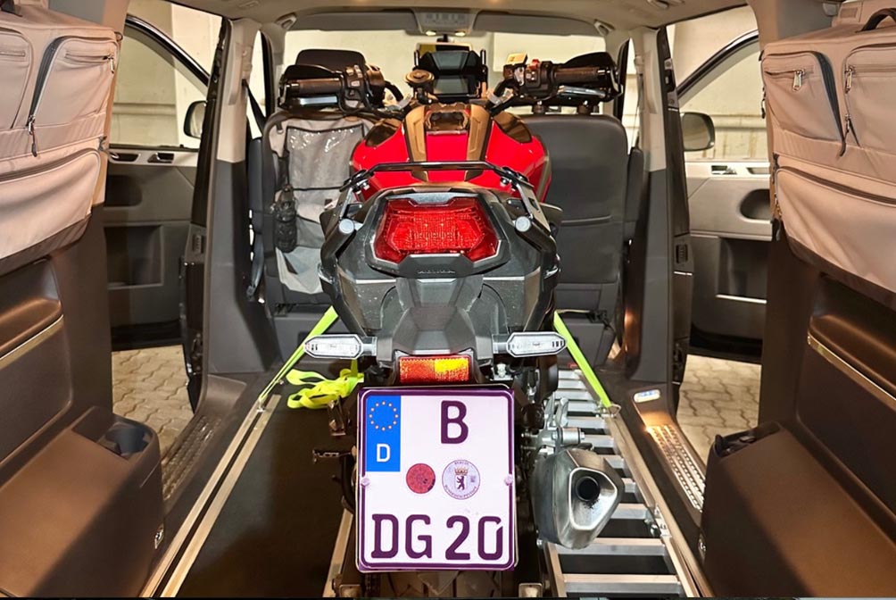 Die NC750x passt in einen VW Bus T5 Muiltivan