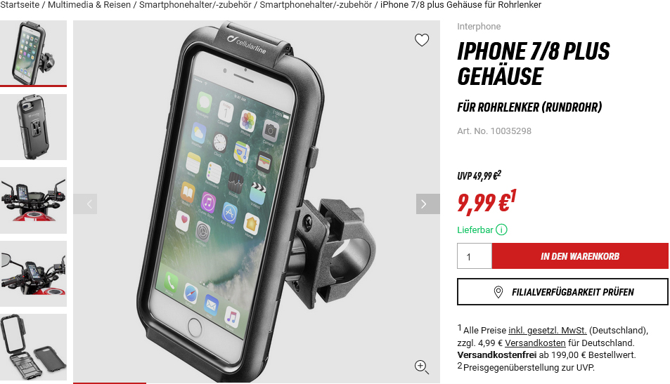 Jetzt brauchte ich noch eine Handyhalterung (siehe Foto). Bei LOUIS wurde ich sofort fündig. Eine Cellularline Markenhalterung die eigentlich
