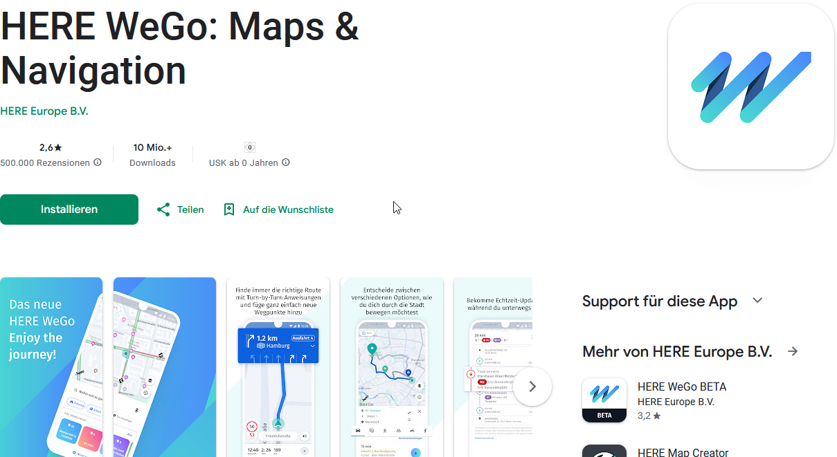 Als erstes habe ich "HereWeGo" installiert.