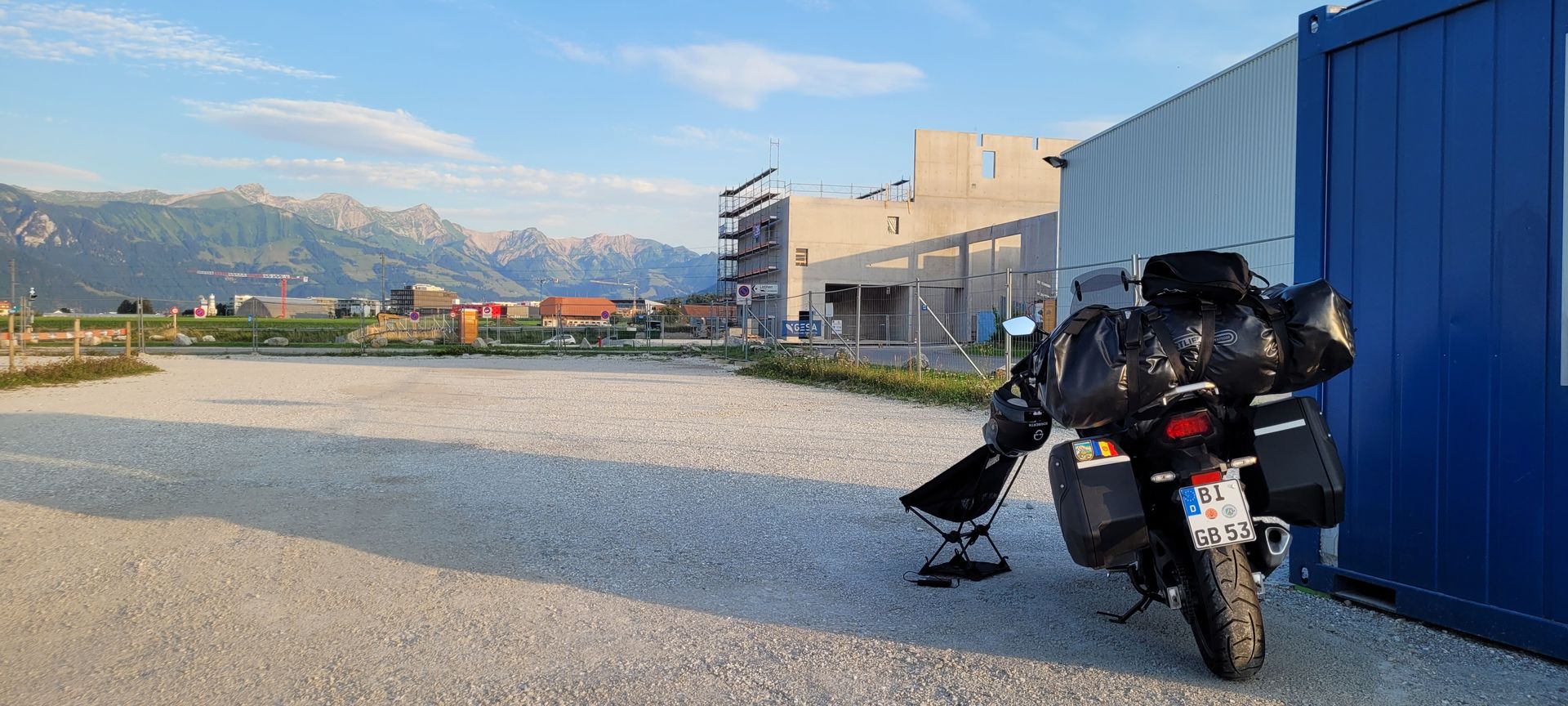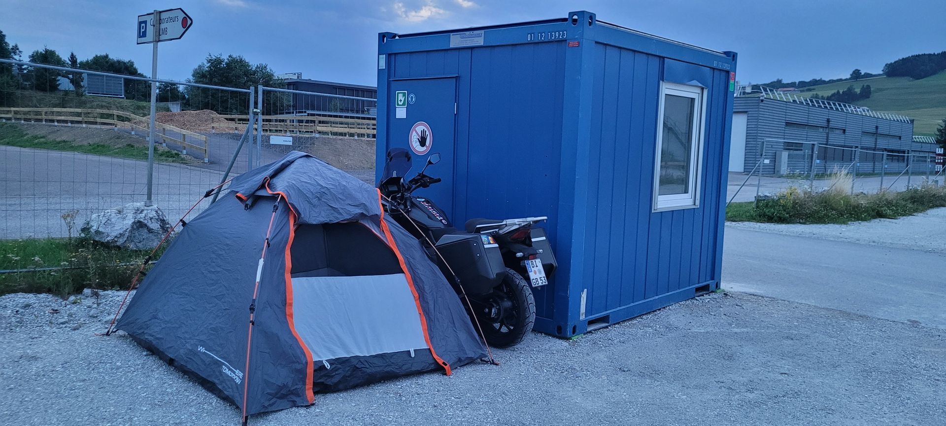 Es ist nicht einfach dem Regen auszuweichen. Bin schon an meinen Schlafplatz in einem Industrie Gebiet.