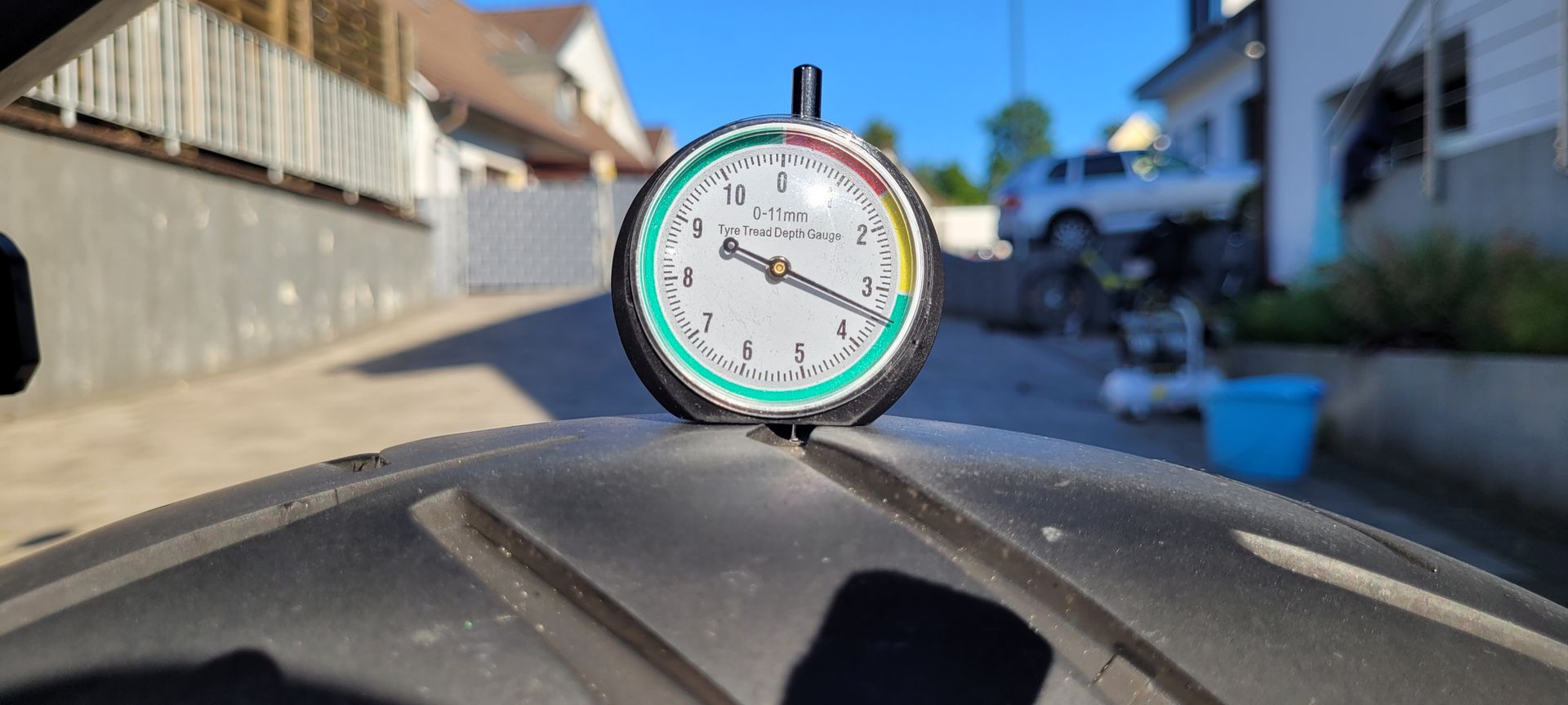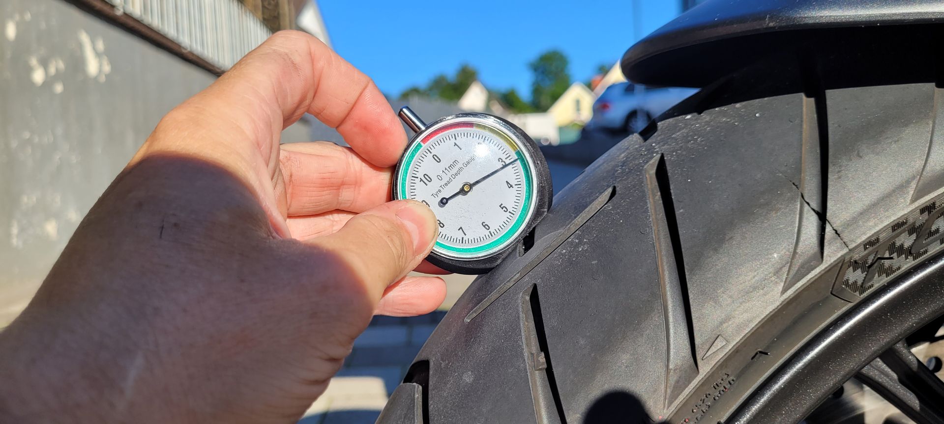 An der geringsten Stelle konnte ich 3,4mm am Hinterrad messen nach 8309km: