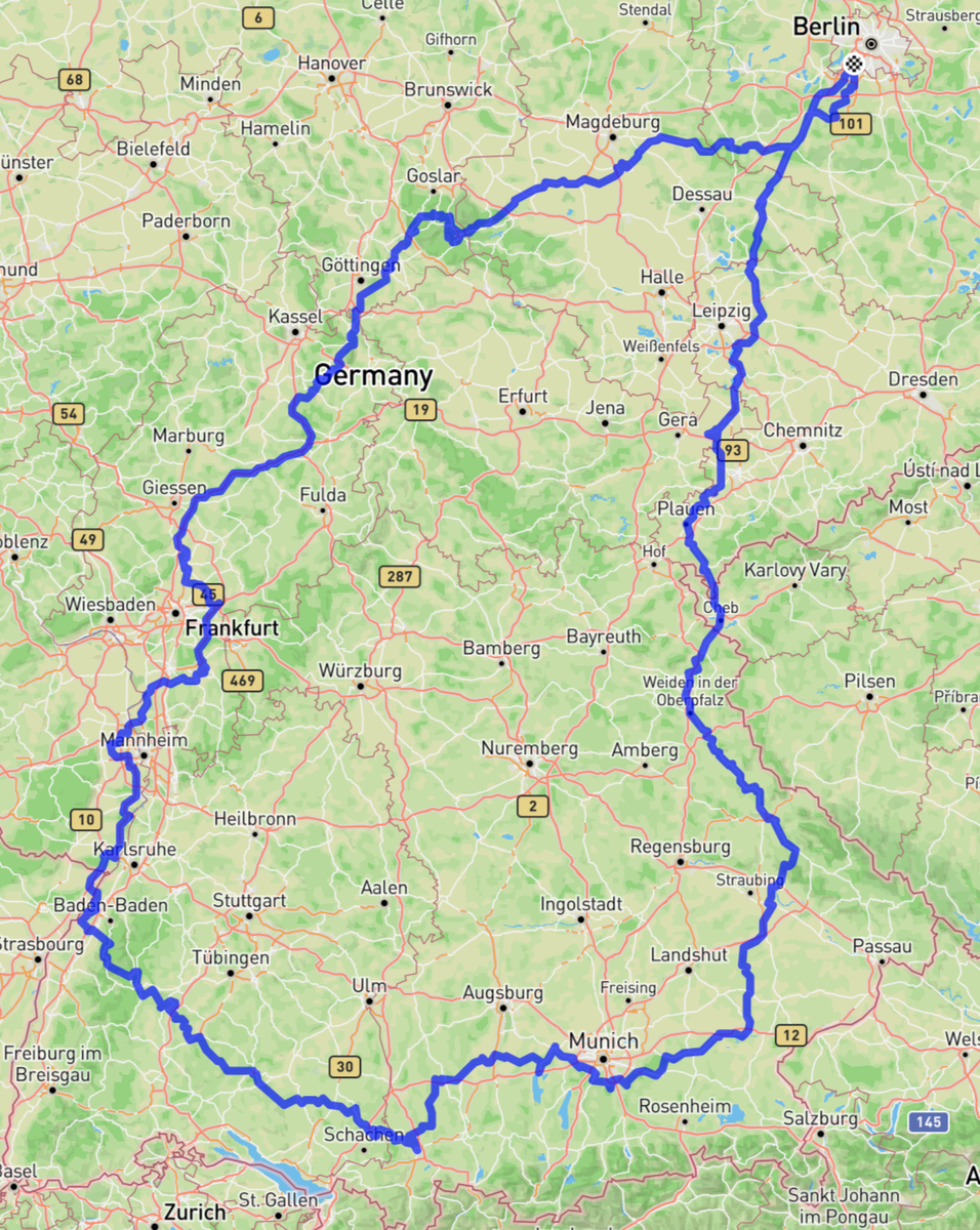 Nach 2188 Kilometern Deutschlandfahrt und 2900 getrackten Kurven bin ich von meiner ersten größeren Tour mit einem Motorrad wohlbehalten zurück. Es gab nur eine brenzlige Situation als mir eine Dame die Vorfahrt im Bayerischen Wald nahm. Ich hatte es glücklicherweise irgendwie geahnt.