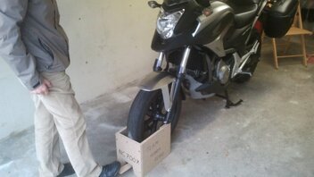 ich habe das früher immer mit einem alten Wagenheber und einem kleinen Brett zwischen Wagenheber und Motorschutzplatte (Africa Twin) gemacht. Das müsste bei der NC auch gehen, allerdings drückt da dann das Brett direkt auf das Motorgehäuse. Daher habe ich beschlossen die Vorderräder einfach alle paar Wochen ein Stück weiter zu drehen. Die NC's stehen in der Garage und die ist bei uns direkt im Haus, also bequem zu machen.