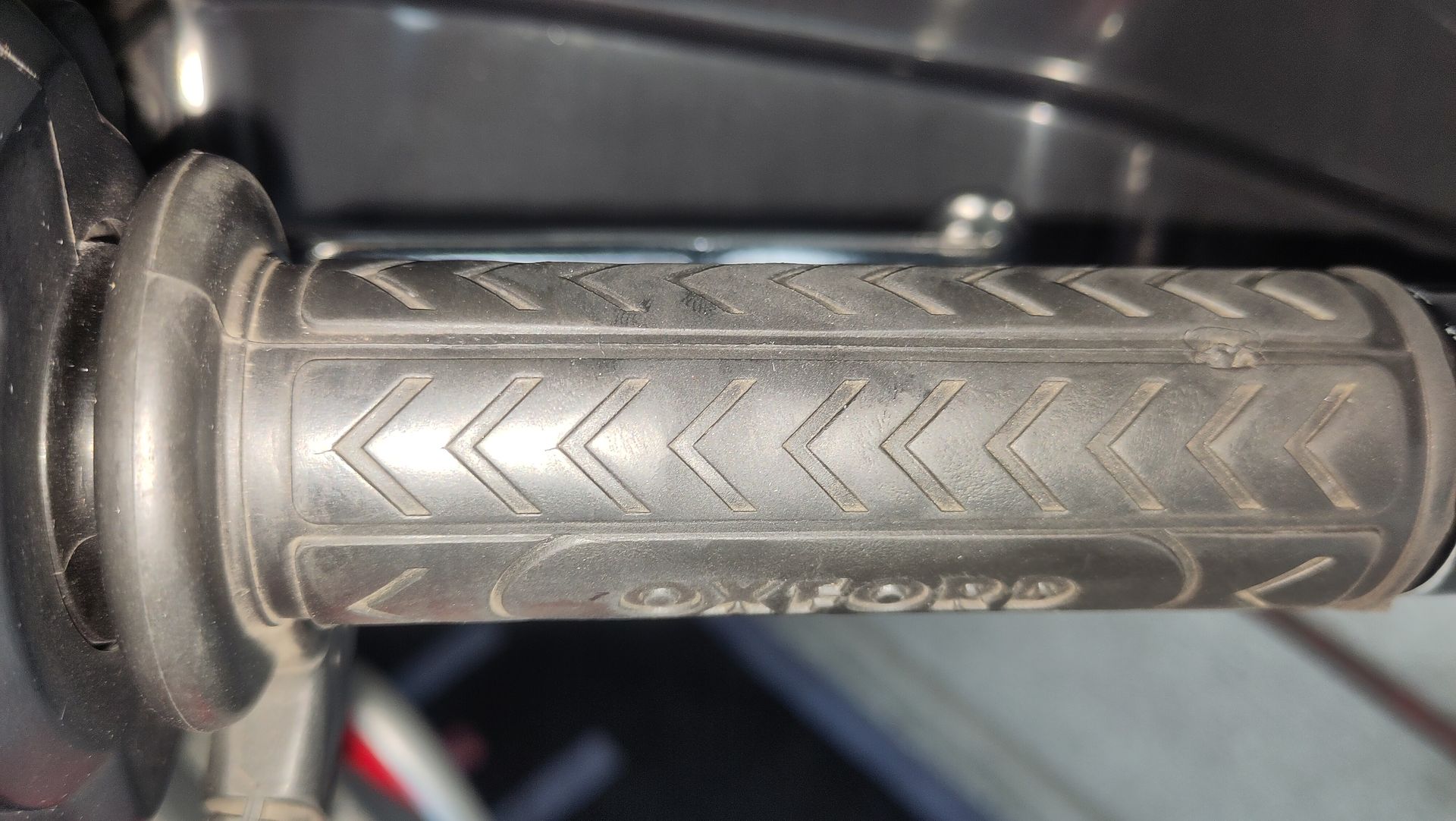 Der linke Heizgriff dagegen weist am äußeren hinteren Ende, also dem Fahrer zugewand, deutlichen Abrieb auf.