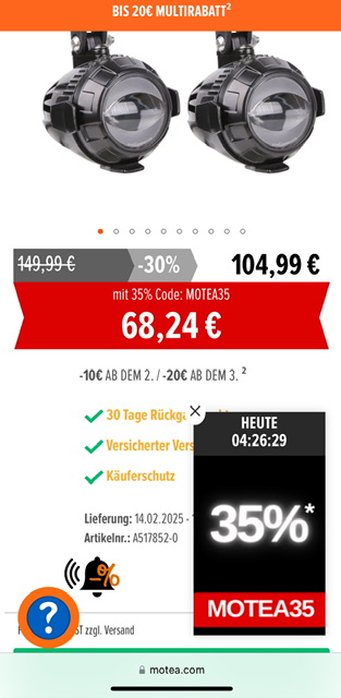Da es im Bereich Zweiradtechnik keine Kategorien für Licht und Elektrik gibt, die Suche nach Licht aber auch nicht modellspezifisch ist, stelle ich meine Anfrage hier.