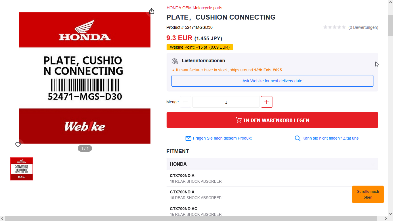 Bei Webike kommen die Teile direkt aus Japan! Hier kommen neben den Versandkosten und dem Warenpreis noch