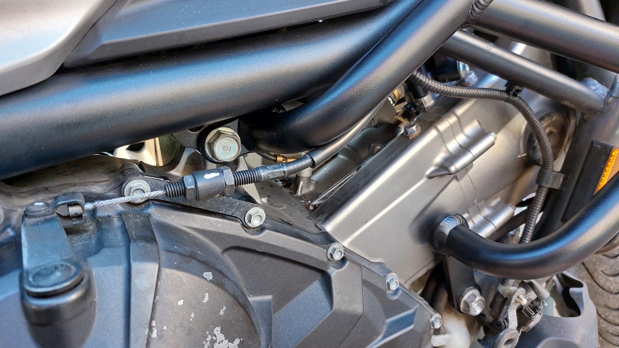 Gefühlte 50 cm Gewinde und die Stahlschraube war ein wenig im Motor-Alu festkorrodiert. Mit einem ausziehbaren Radmutternschlüssel vom Auto (SW17) ging es dann aber. Bei der Montage dann mit ein wenig Ballistol behandelt und alles ging leicht.