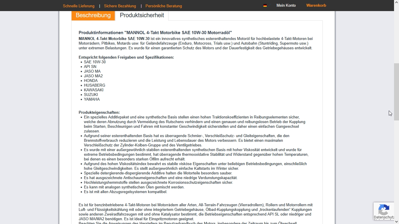 Der Händler hat das originale Hona Öl verwendet - 10w30 MA MC Oil. Der Literpreis von knapp 23€ ist mir allerdings etwas zu hoch.