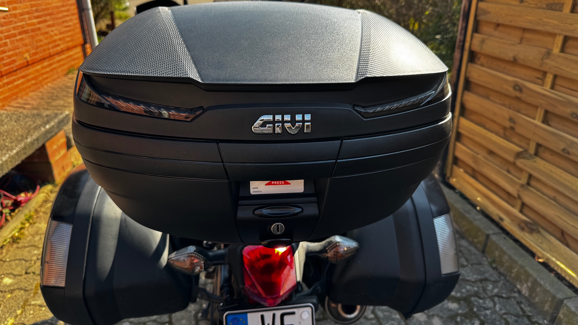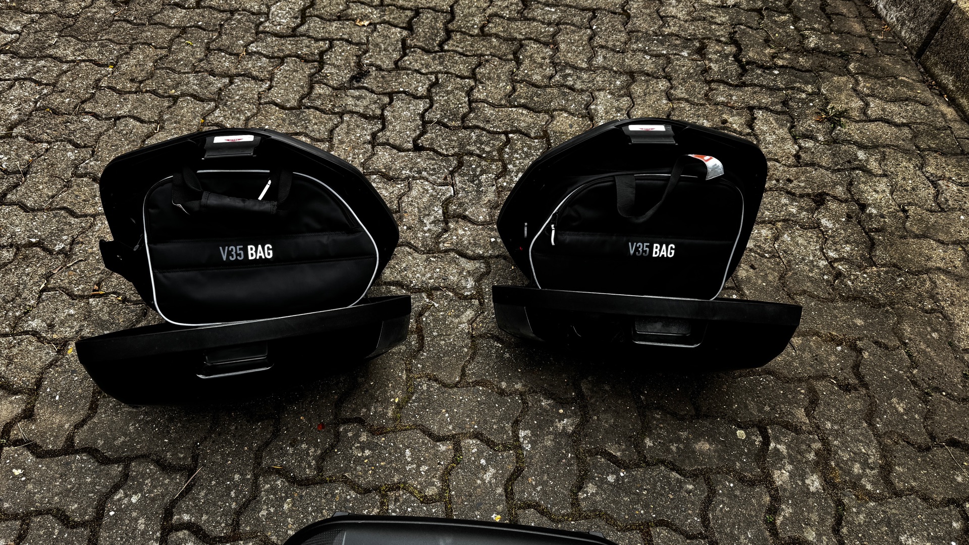 Koffer V35 Monokey mit Gebrauchsspuren aber intakt. Dazu Givi Innentaschen.