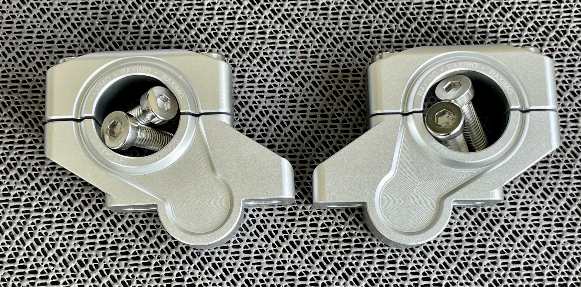 Ich biete eine silberne Lenkererhöhung mit Versatz von Raximo. 30mm höher, 20mm näher am Fahrer.