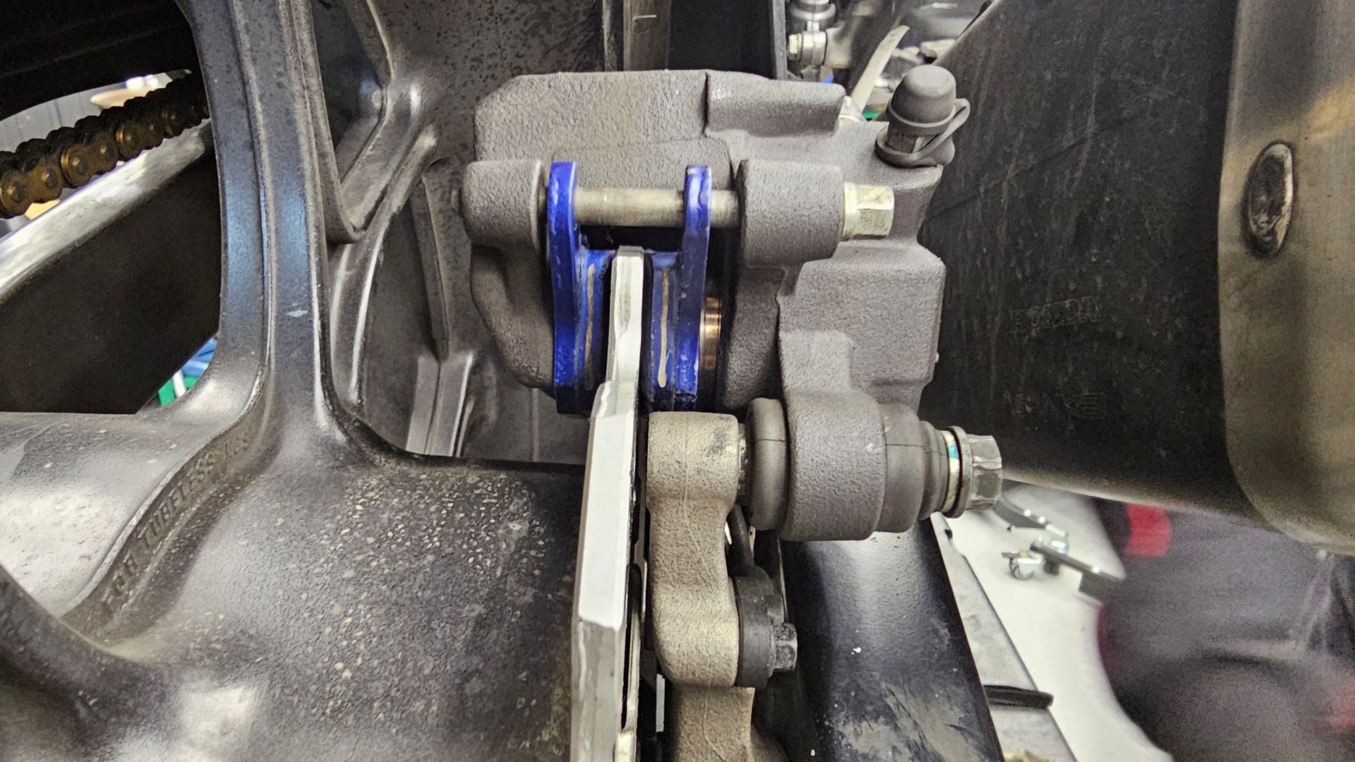 Neue noch sauber und farbenfroh schimmernde Teile an der Bremse sind doch eine Augenweide, gell