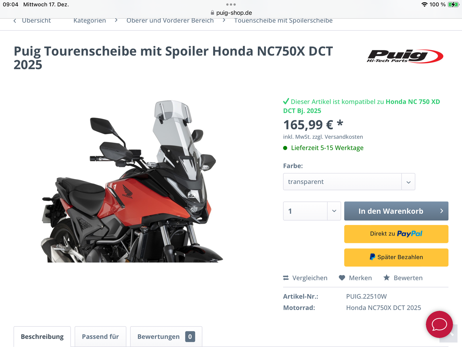 Das Modell wird von unseren Kollegen in den kommenden Tagen im Sortiment aufgenommen.