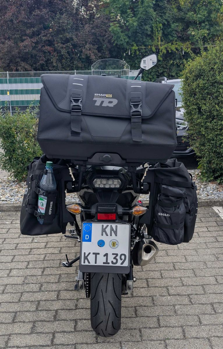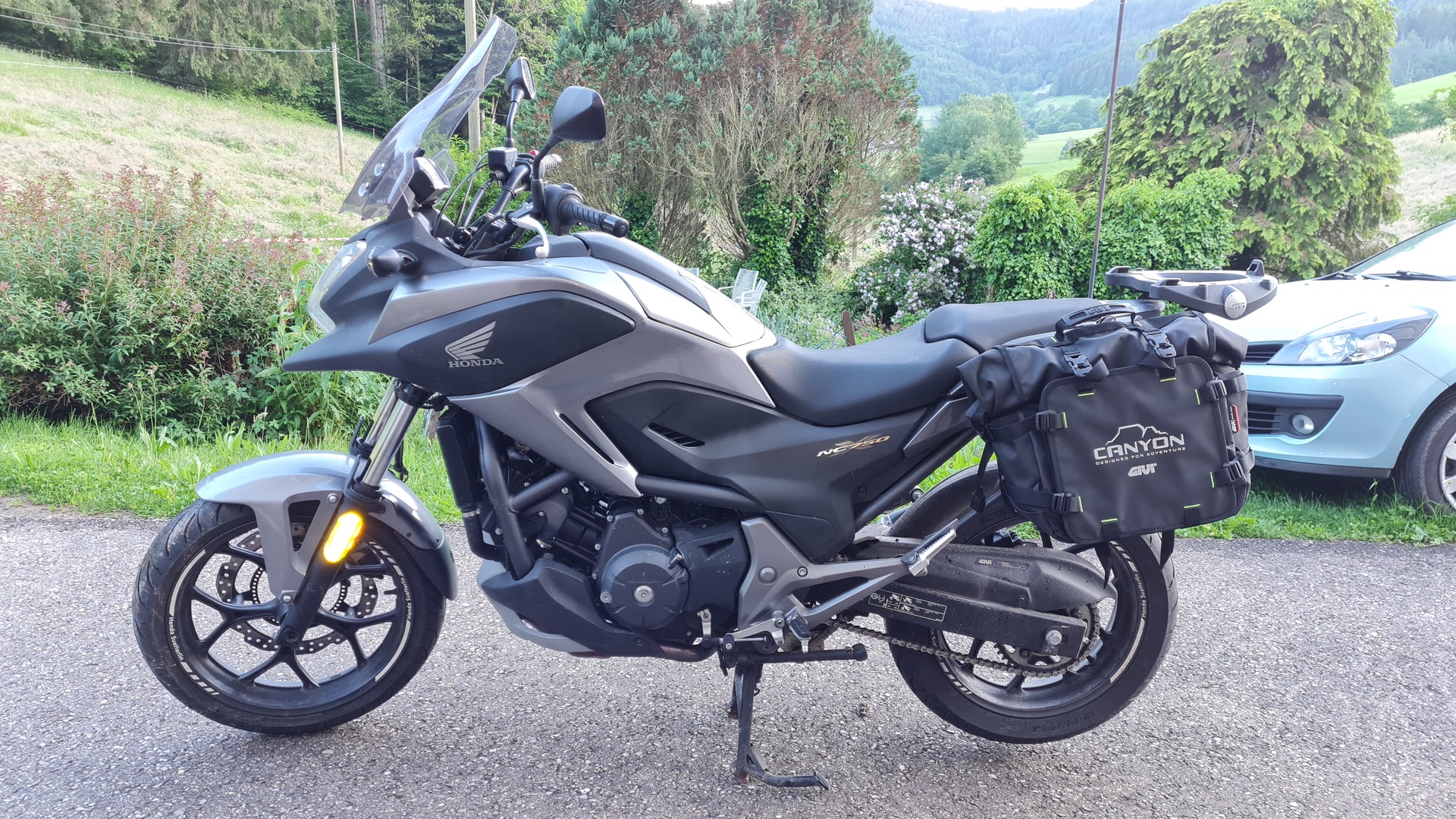 Erstmal ein Bild des GIVI Seiten- und Heckträgers an meiner NC RC72 von 2014 mit Topcase: