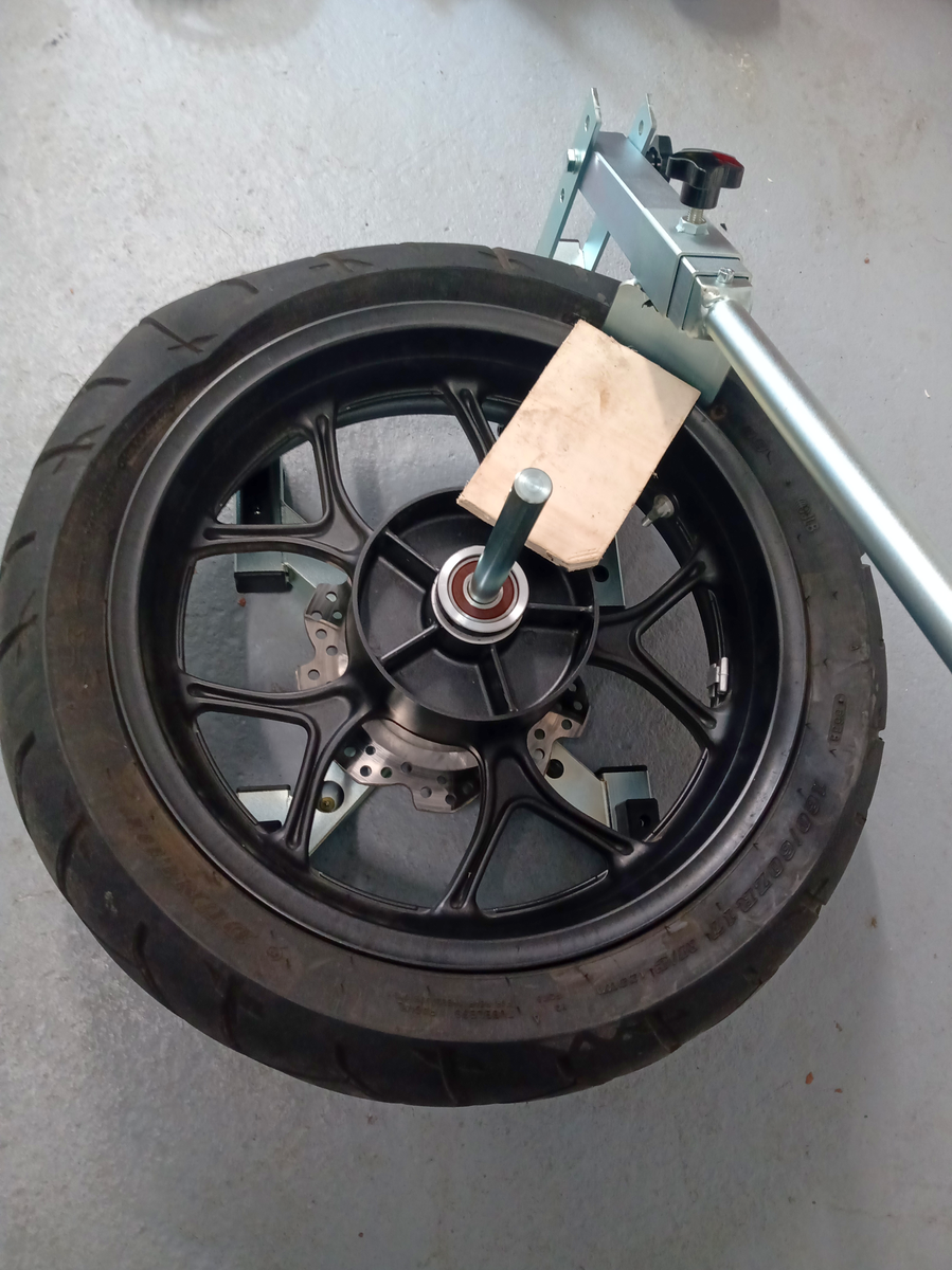 Dann habe ich mir noch ein Maontage Standgerät gekauft und kann da bis 300er Hinterreifen wechseln für gute Freunde mit Harley Davidson oder anderen Moped.