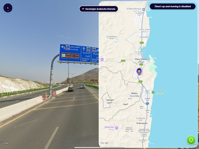 Man hat nun 2 Minuten Zeit, sich in Streetview zu bewegen. Danach wird die Position eingefroren.