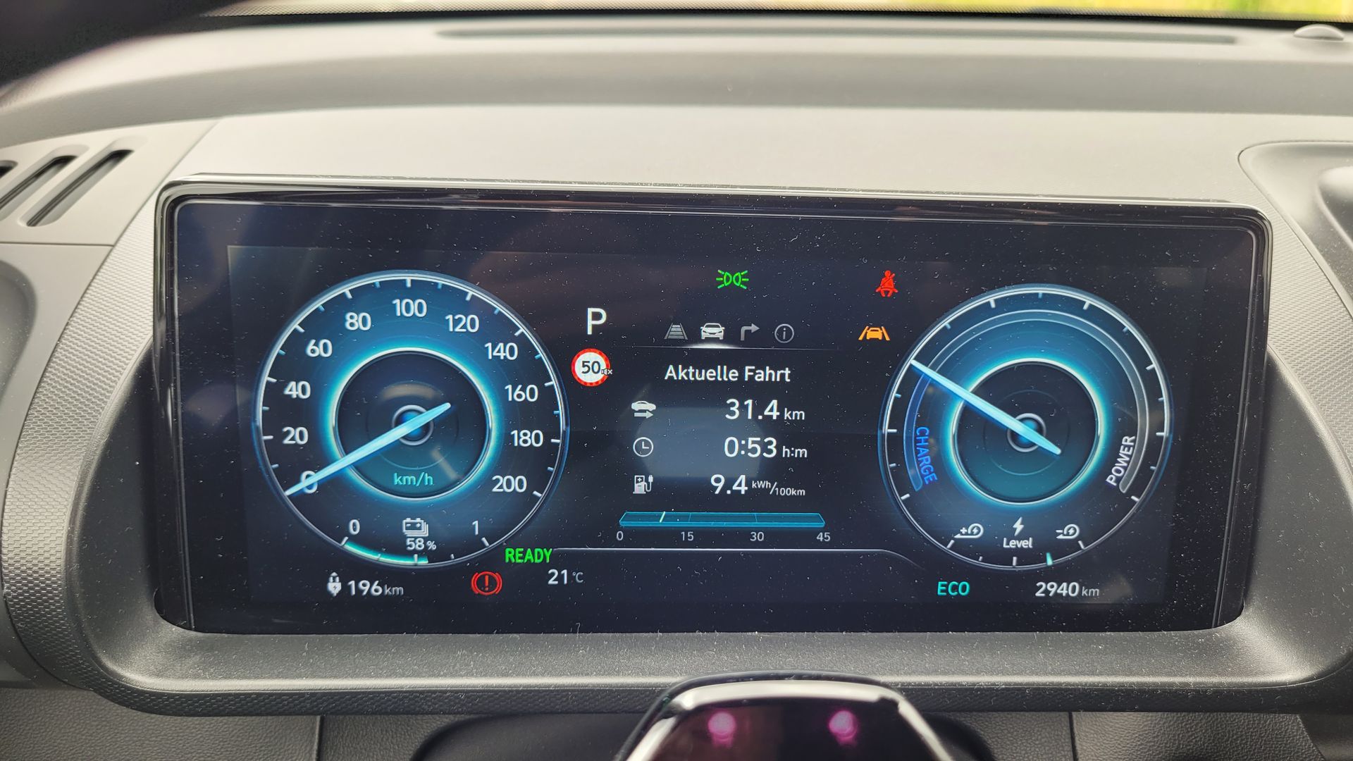 Wenn man dann einbezieht, dass ein Liter Benzin dem Energiegehalt von 8,9KW entspricht, den fahre ich den Inster mit weniger als 2 Litern Benzin auf 100km.