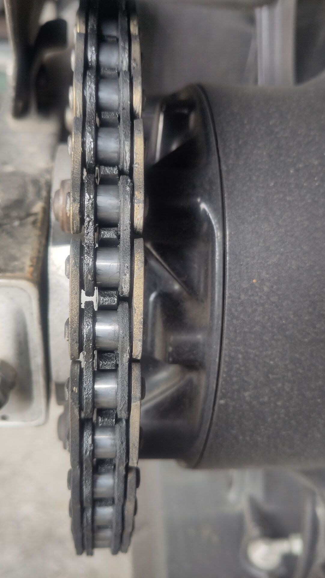 Das Ergebnis ist aus meiner Sicht aber in Ordnung. Auf den Rollen und an den Flanken der Zähne des Kettenrades ist ein minimaler Ölfilm zu erkennen. Die Ölung scheint ausreichend zu sein.