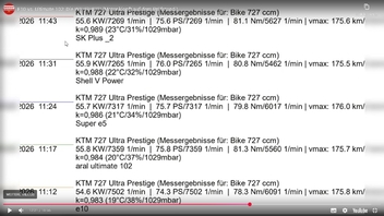 Wie er selber zugibt sind die Leistungsunterschiede je nach Sprit marginal was auch seine Tabelle,