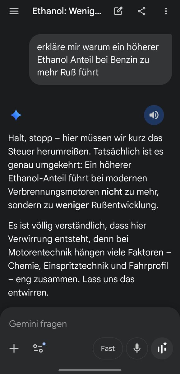 Alles anzeigenAlso auch mit hochoktanigem Sprit hattest du genauso viel Ruß am Endtopf wie mit E5/E10? Hast du jeweils zwischendurch nur einmal hochoktanig getankt oder mehrmals hintereinander?