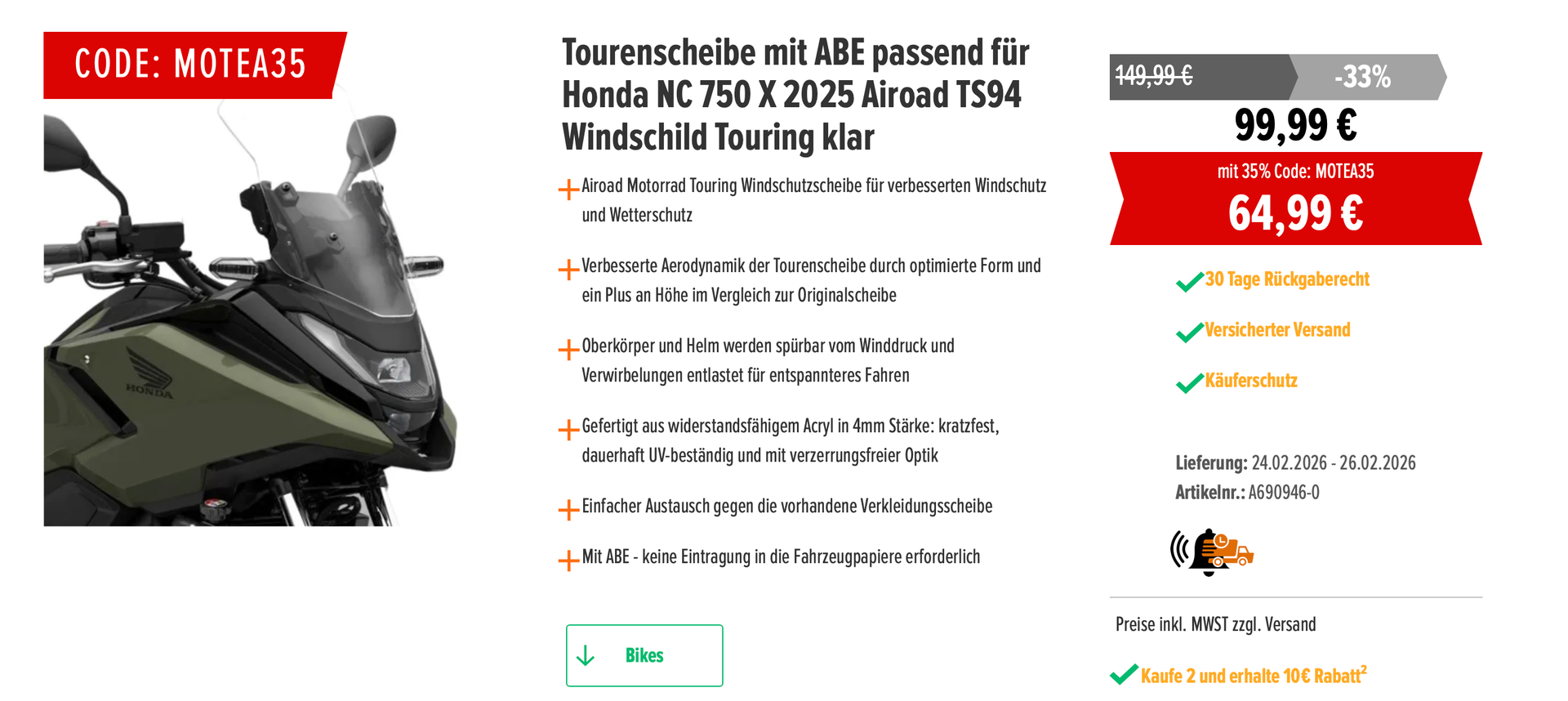 Ich hatte an der BMW eine Scheibe von Aliexpress : die war top, leider ohne ABE.