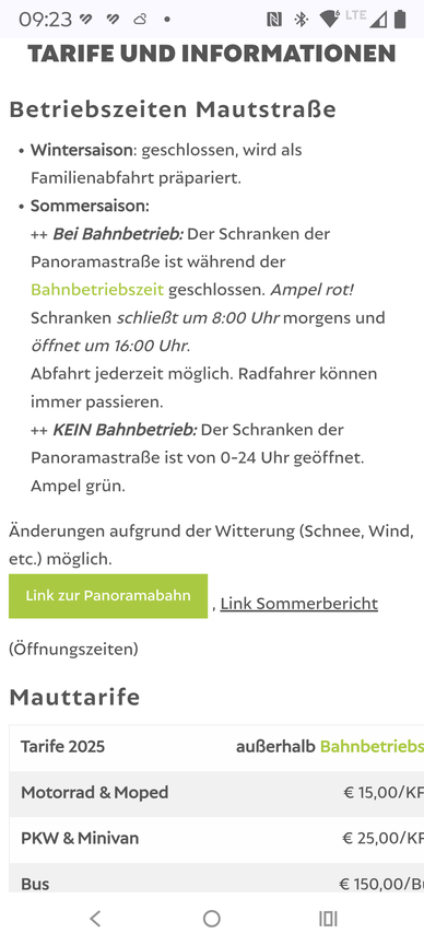Für Motorräder beträgt die Maut aktuell 15 €, PKW zahlen 25 €.