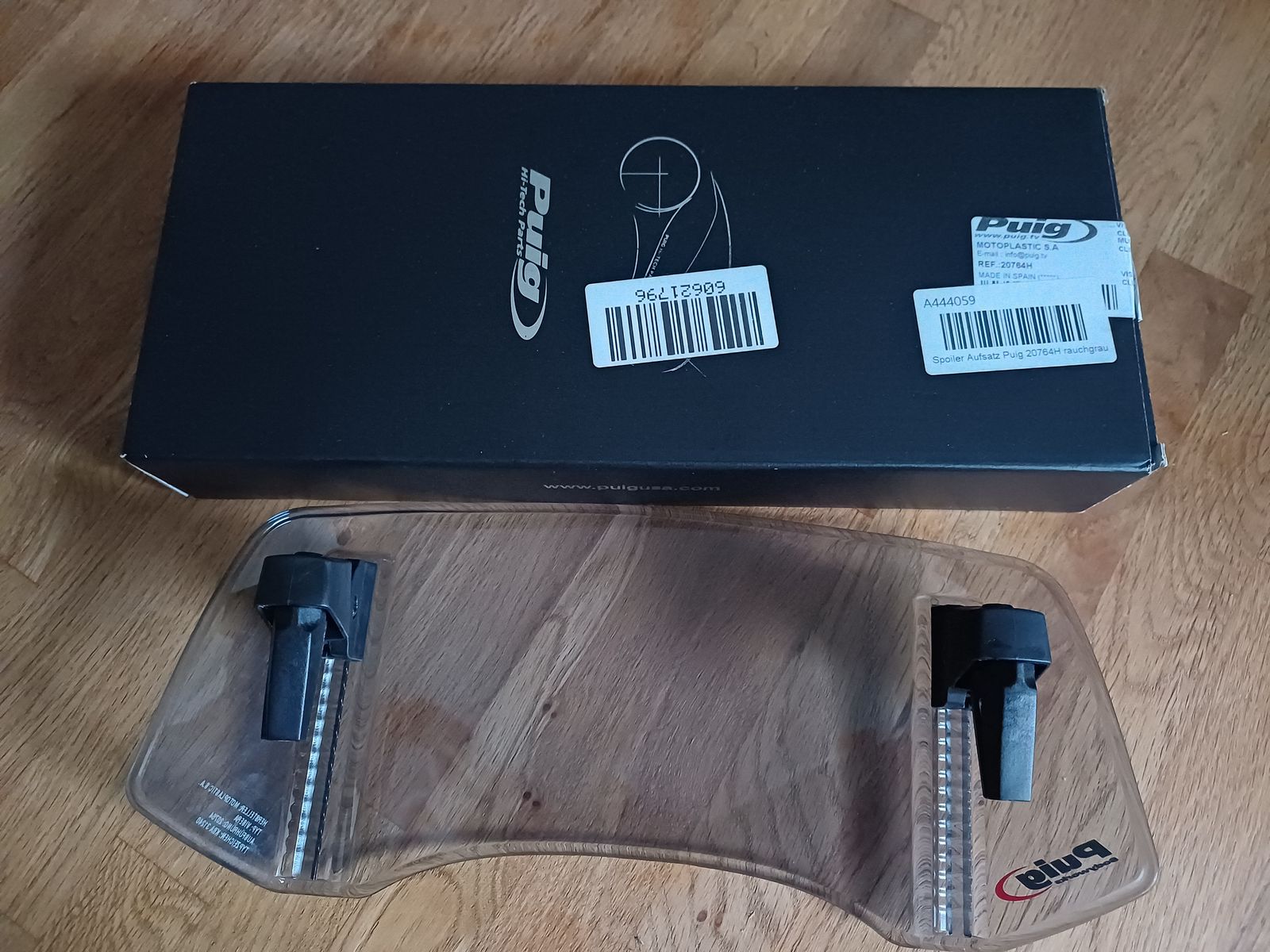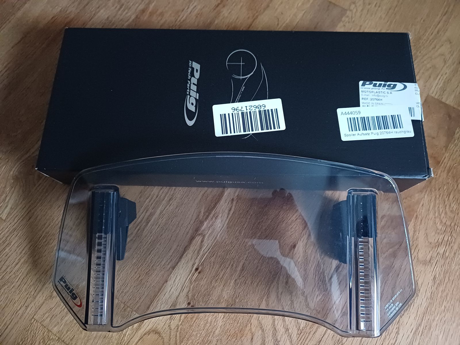 ich biete eine Spoilerscheibe von PUIG zum Verkauf an. Durch den Wechsel von einer Tourenscheibe mit Aufsatz zur kurzen originalen Scheibe ist dieser Aufsatz jetzt über.