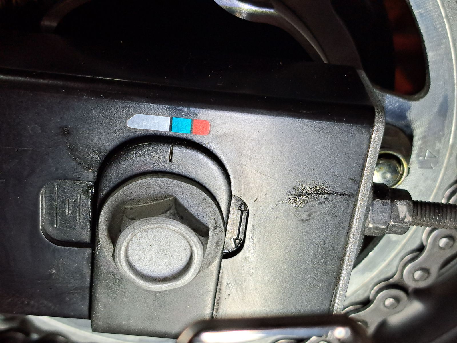 Bei der Begutachtung der Kette ist mir aufgefallen, das der Kettenspanner ziemlich weit hinten steht.