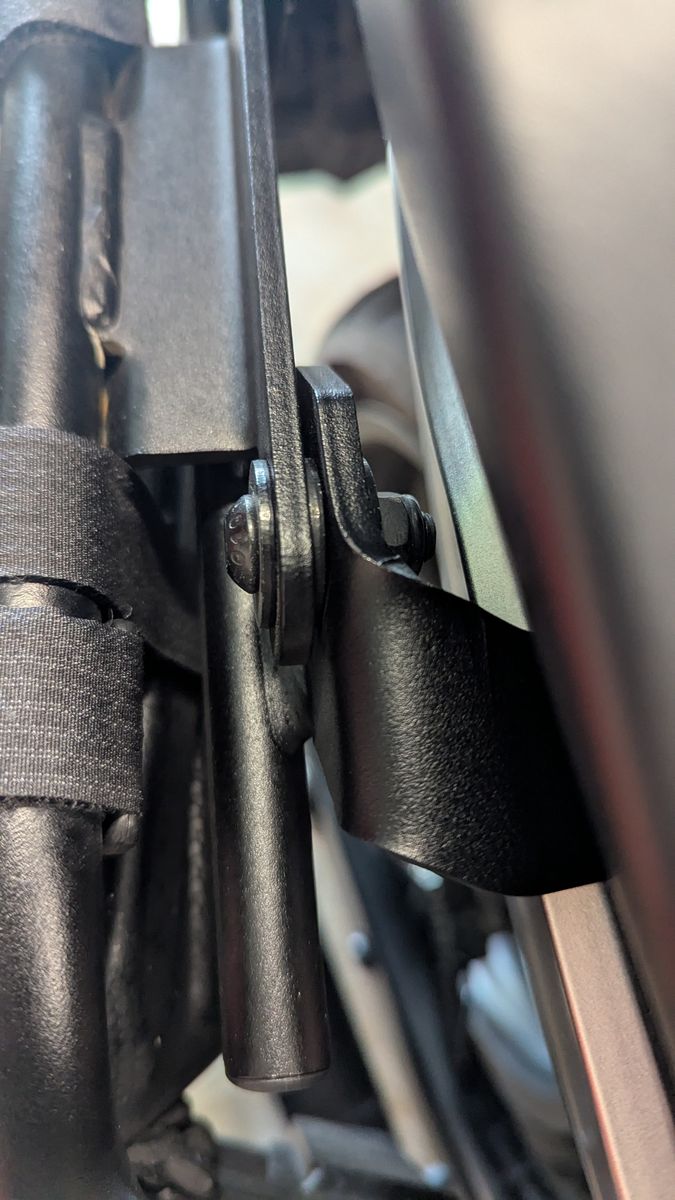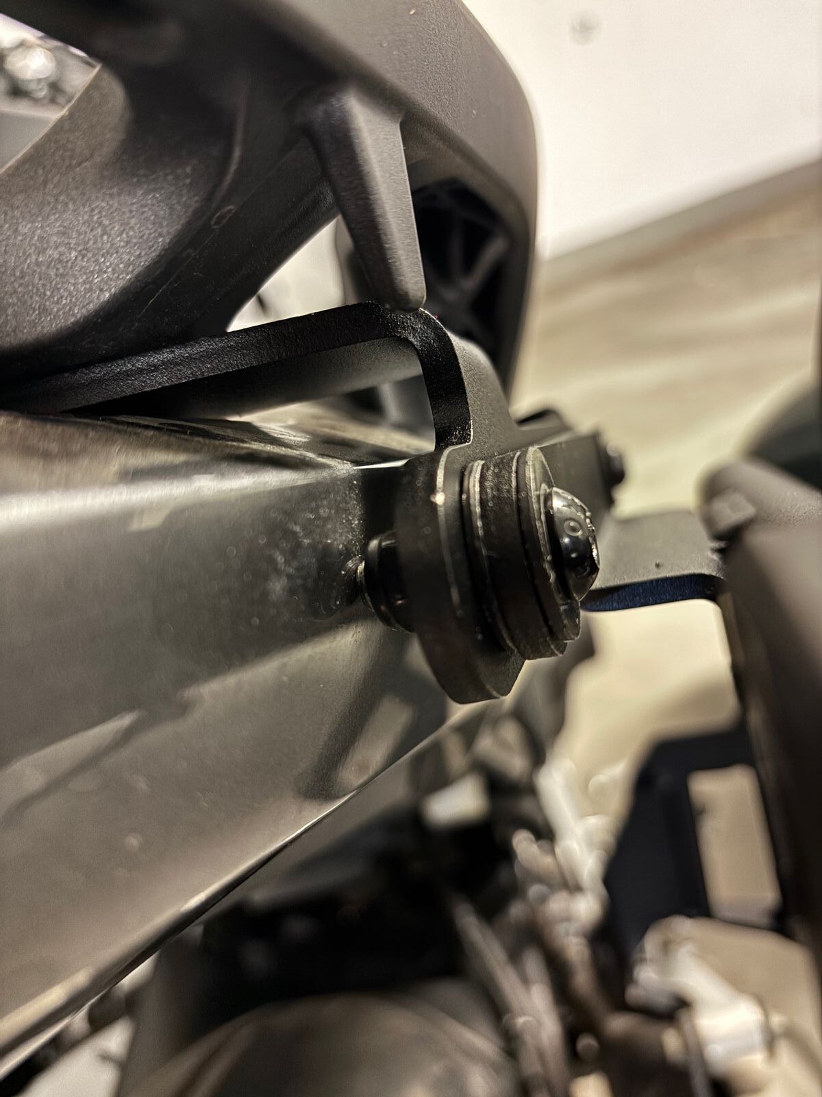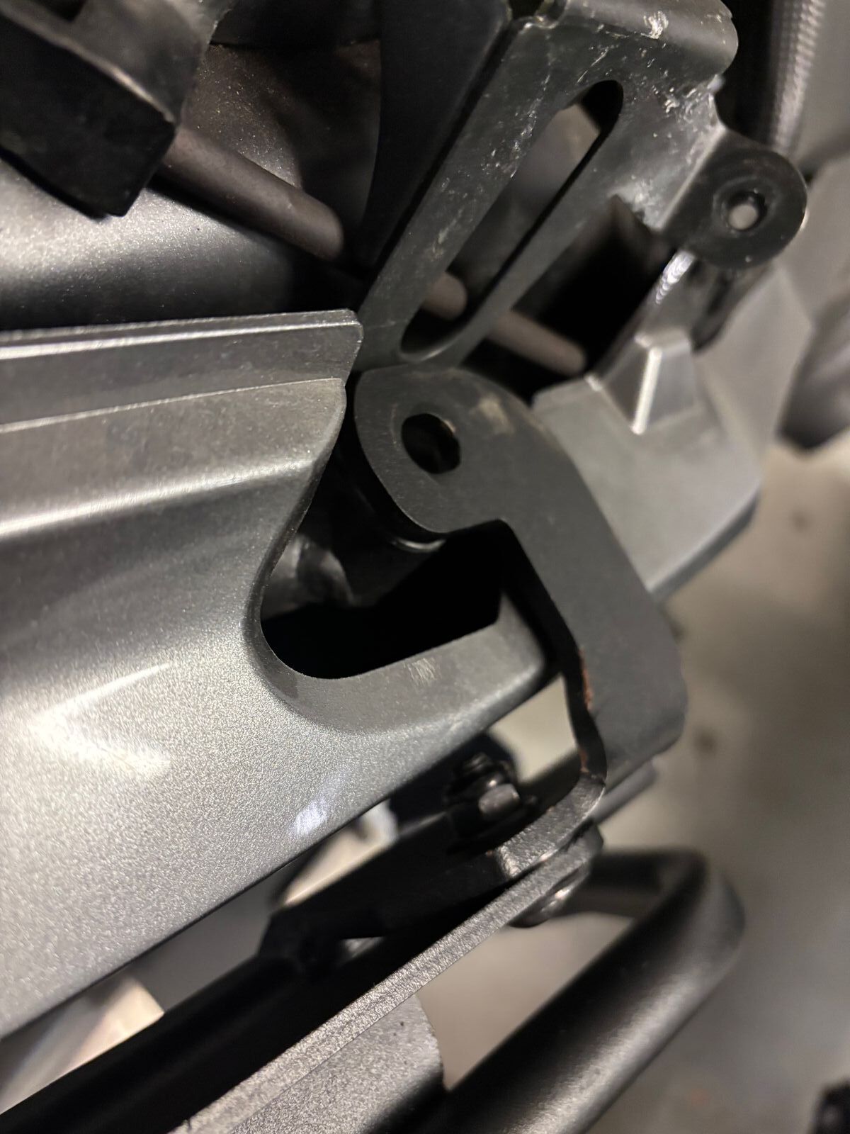 Wenn ich die Topcasehalterung abmontiere und die beigelegten Halter für die Seitenkofferträger montiere, passt es, aber ich will ja beides. Zudem berührt die Schraube dann auch die Verkleidung. Klar hier könnte ich mit einer weiteren Unterlegscheibe arbeiten, aber auch hier bin ich mir unsicher ab das so muss...