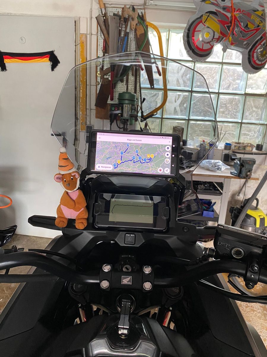 Bei der RH23 ist das Display schon so tief angebracht, dass man fürs Geschwindigkeit ablesen usw. deutlich den Kopf senken muss. Unter dem Display, sprich am Lenker ein weiteres Display anzubringen halte ich daher nicht für optimal, sondern über dem Honda Display vor der Scheibe. Da bräuchte es aber eine Art Querstrebe, um das Display befestigen zu können. Ist hier schon jemand fündig geworden?